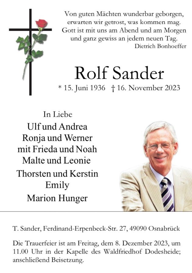 Gute Reise Rolf und fühle dich von uns umarmt und begleitet.